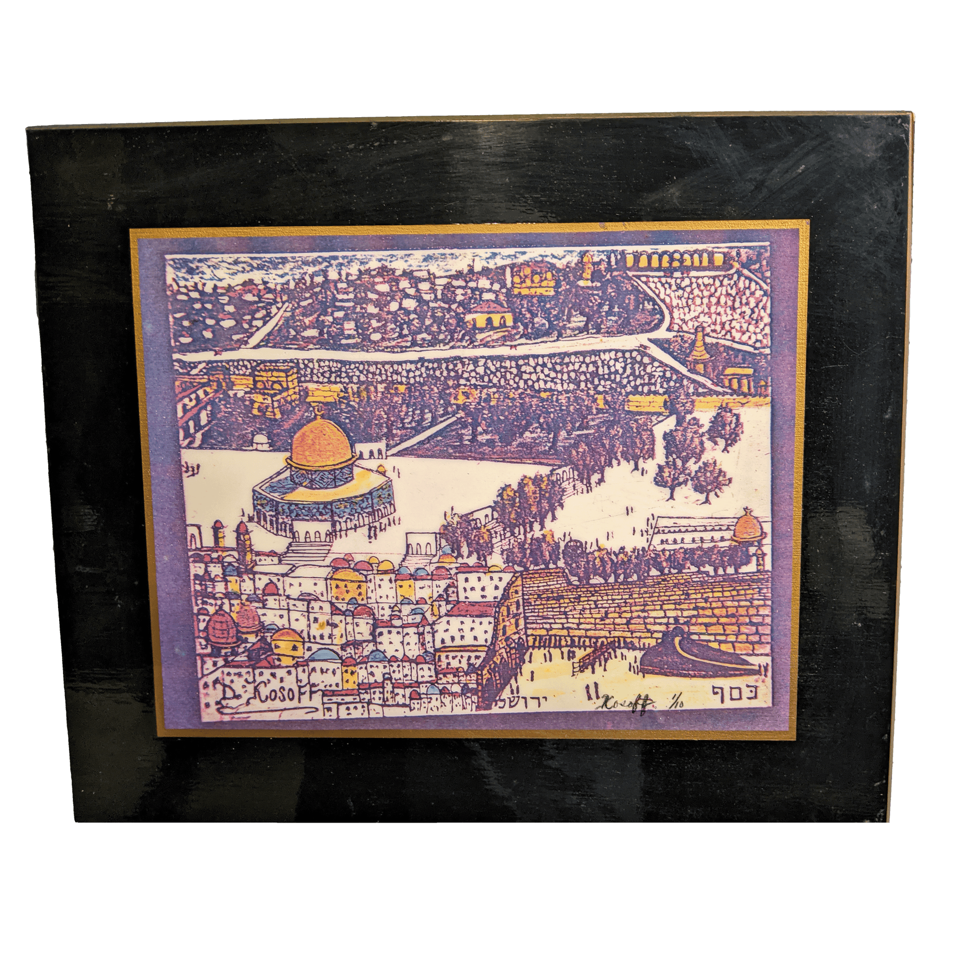 This intricately detailed portrayal of Jerusalem’s skyline pulsates with spiritual grandeur and historical mystique. Awash in vibrant purples, golds, and soft pinks, it captures famed landmarks like the Dome of the Rock and the ancient city walls, echoing a timeless reverence. A rare fusion of cultural heritage and artistic flair, it stands as a stunning conversation piece for the truly discerning collector.